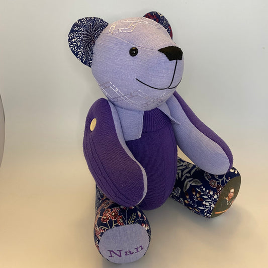 ! Memory bears and keepsake items made from clothing are not toys and should not be treated as such, especially by young children. Due to the use of pre-worn clothing, they cannot be individually safety tested to toy standards and are therefore not suitable for children under 14. They are intended as decorative keepsakes for display only.