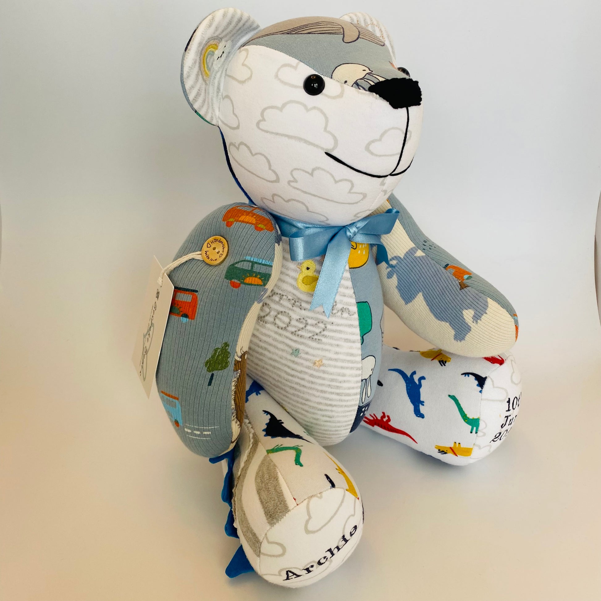A Keepsake bear crafted from baby’s clothing, capturing precious memories from birth. A heartwarming way to cherish those early moments.
