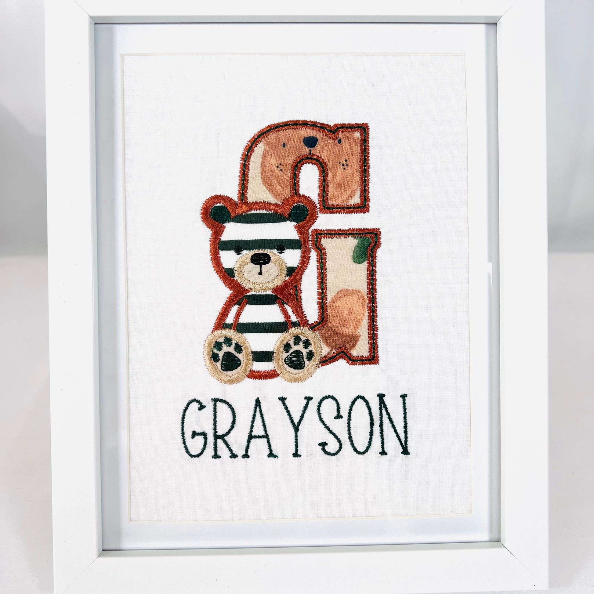 - For the large frame: one piece approx. 12 x 20cm for the initial, plus a second slightly smaller piece for the bear.