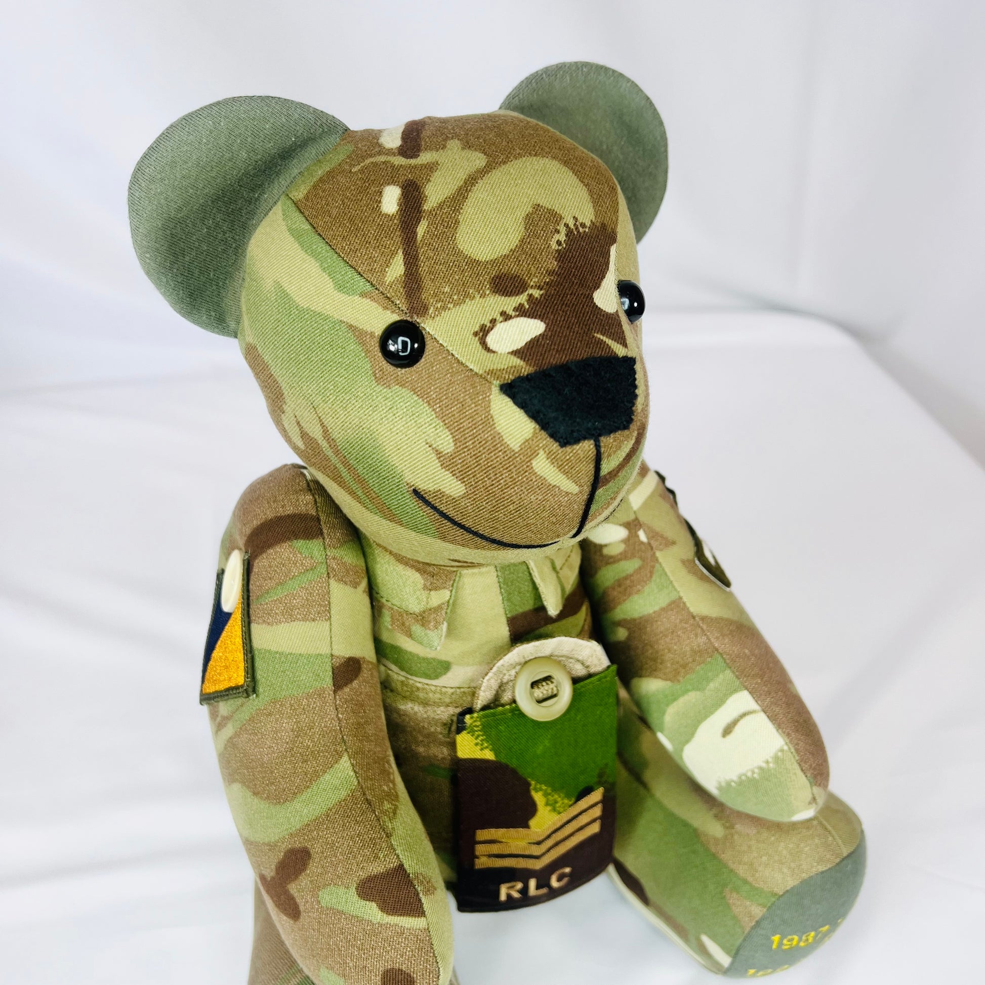 A Keepsake Bear, stitched with love from any type of Military uniform.
